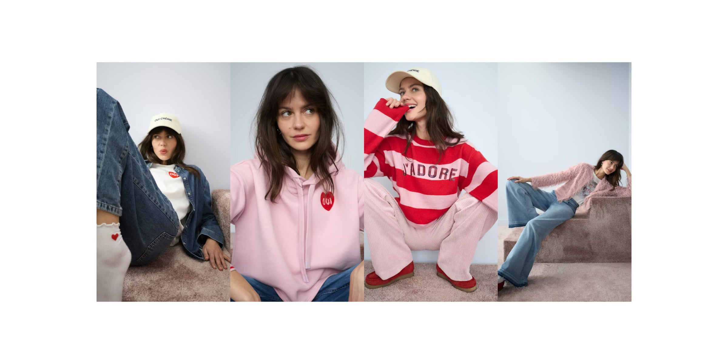 Die neue Kollektion von Oui feiert Liebe und Verbundenheit. Entdecke verspielte Strickdesigns, softe Rosa- und Pinktöne und liebevolle Details.