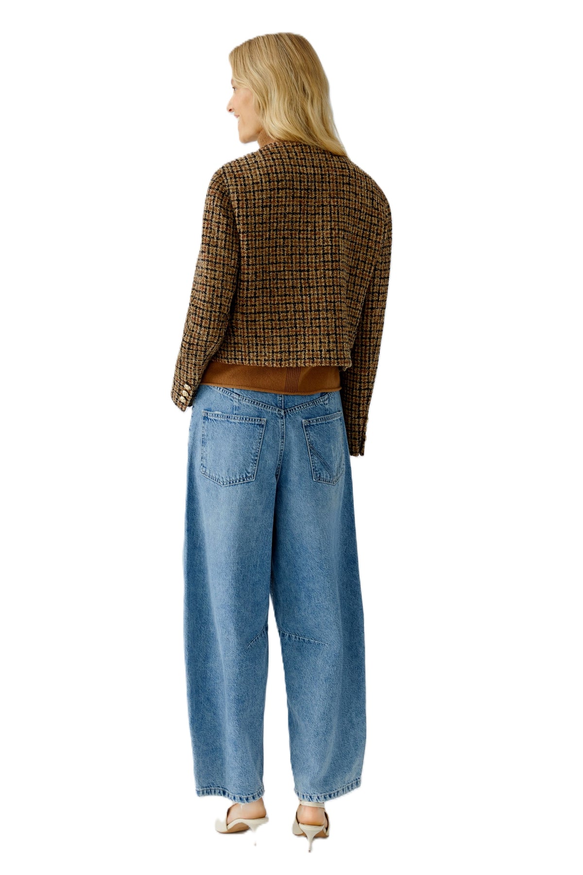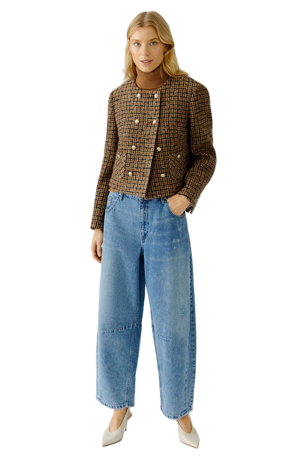 Jacke Oui. Sehr coole und vielseitig einsetzbare Jacke. Die Jacke hat goldene Wappenknöpfe und ist kurz und knackig geschnitten. Die Form der Jacke ist gerade und doppelreihig. Sie hat einen Rundhalsausschnitt und aufgesetzte Taschen. Die Jacke ist ein super Highlight über alle highwaist Hosen und Röcke. Auch zur Jeans ist der Look sehr modern und feminin. Die Jacke fällt größengerecht aus.
