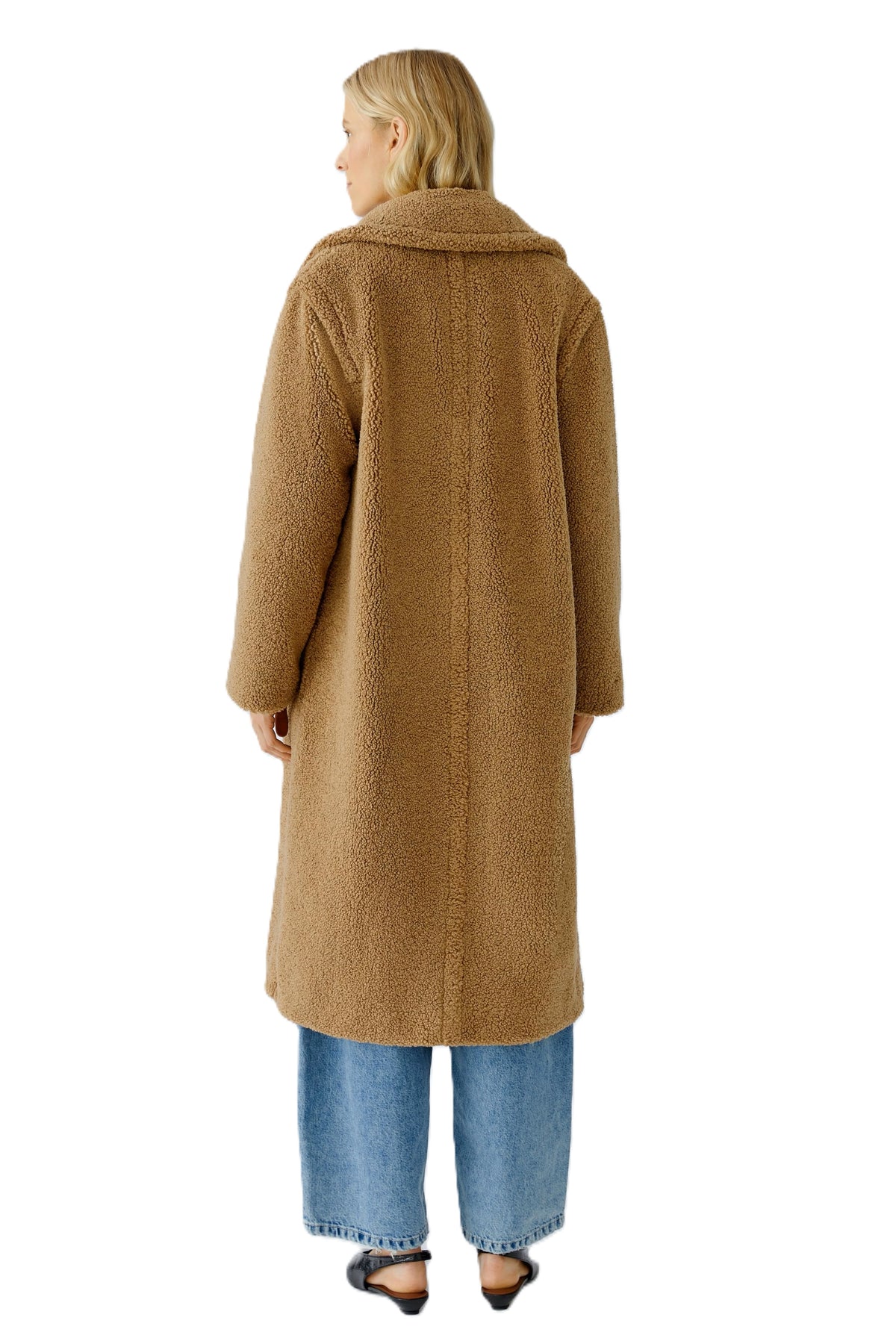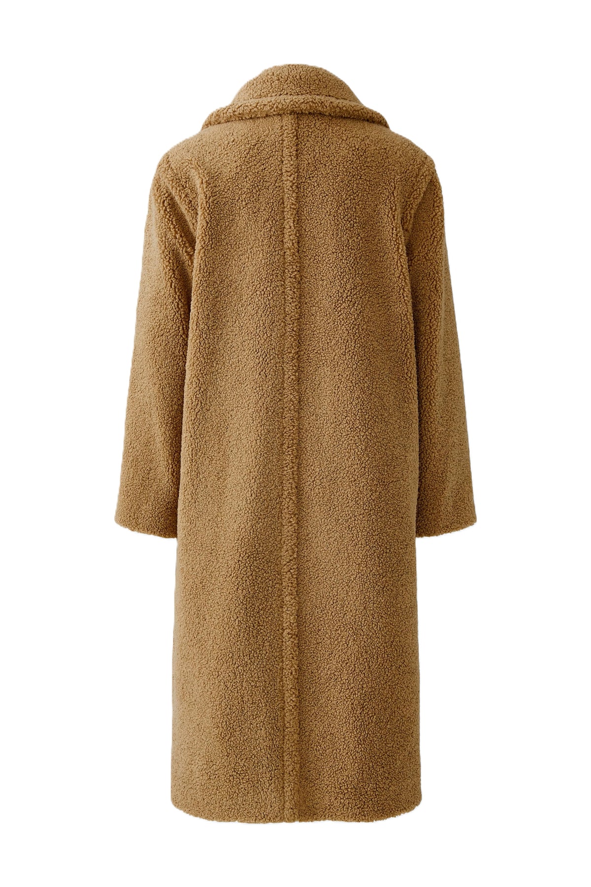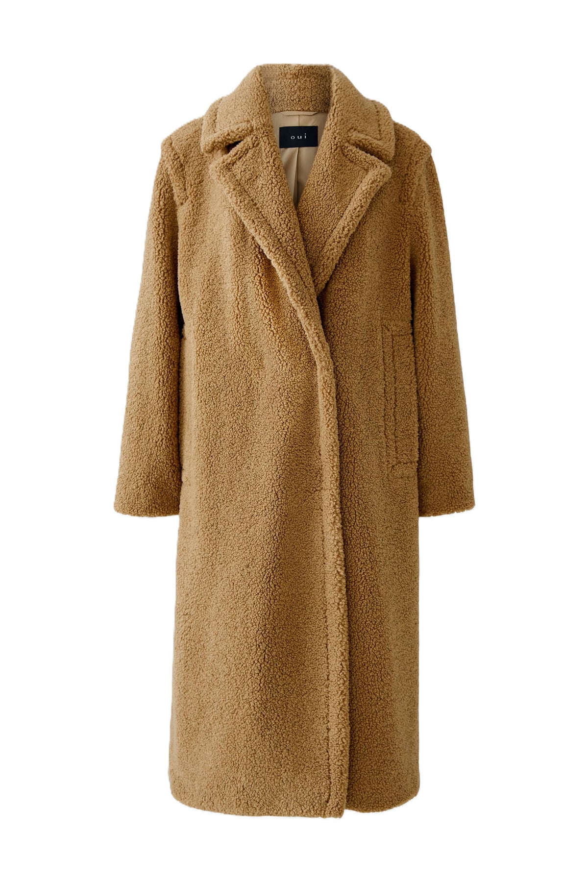 Mantel Oui. Super lässiger und leicht überschnittener Kuschelmantel aus weichem Teddyfell. Der Mantel hat eine leicht überschnittene Schulter und einen Druckknopf zum Verschließen. Er ist lässig geschnitten und hat eine normale Länge. Er hat seitliche Eingriffstaschen und fühlt sich kuschlig und weich an. Er ist komplett gefüttert und daher der perfekte Begleiter für den Winter.