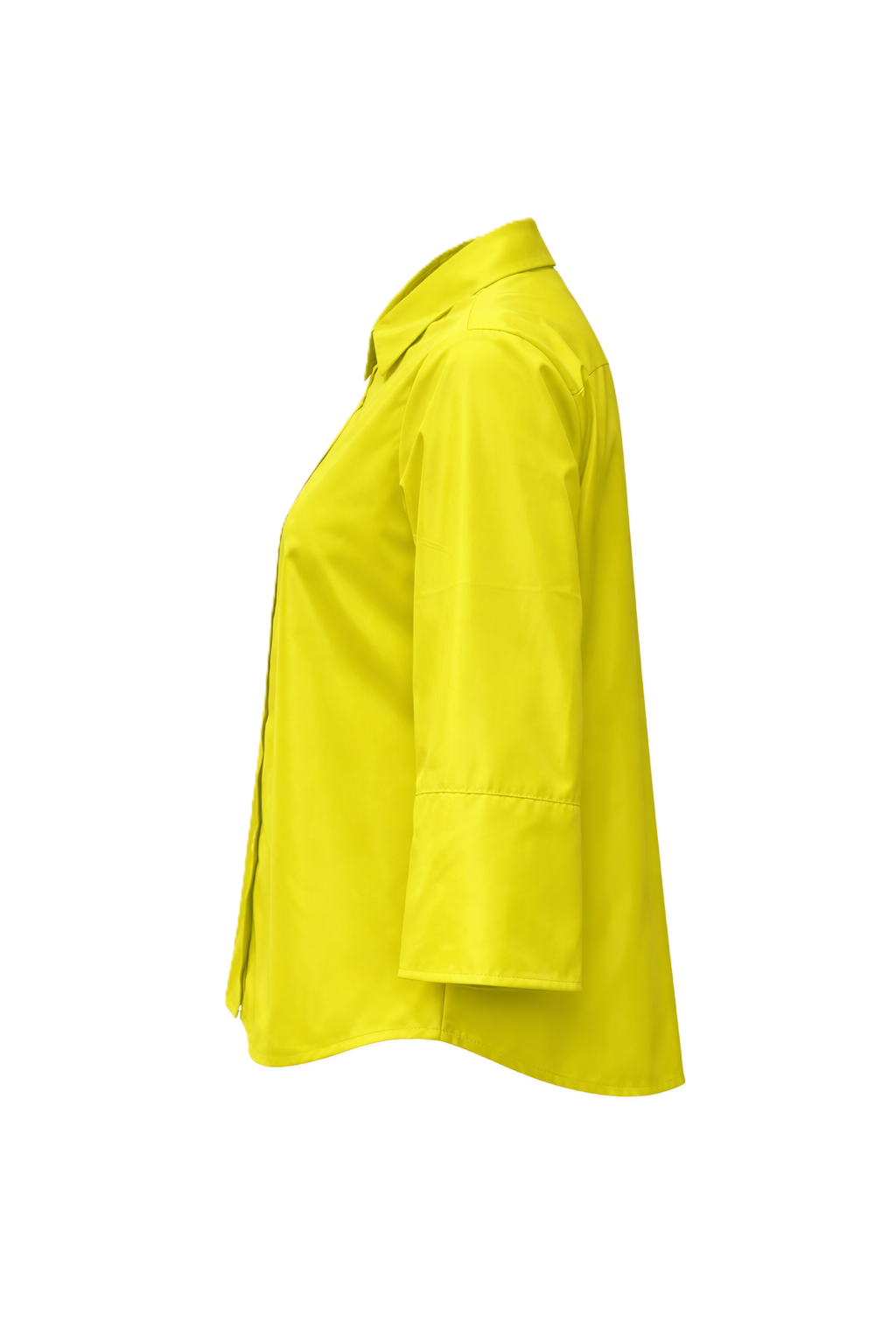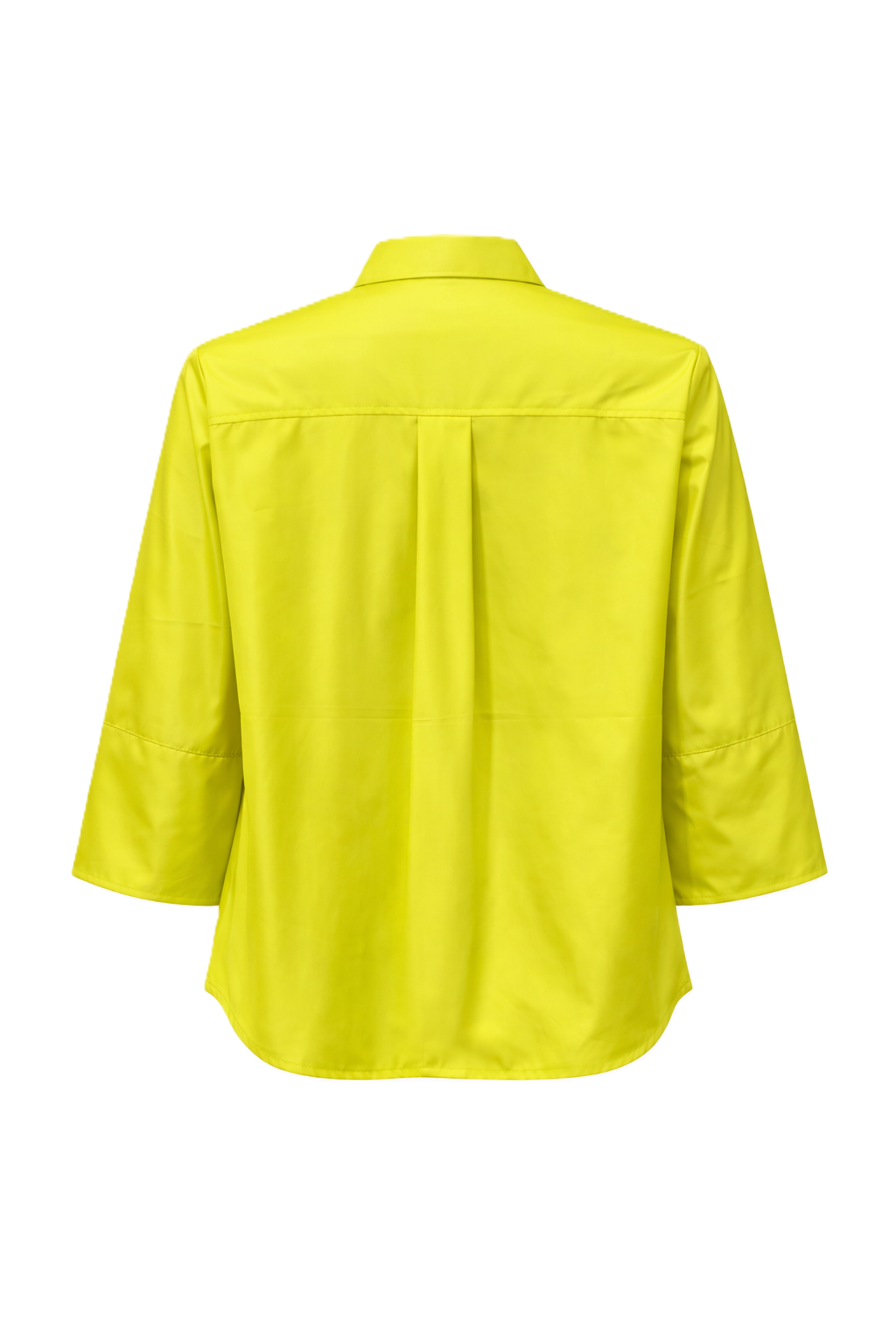 Taftbluse The White Shirt. Coole Bluse in verkürzter kastiger Form. Die Bluse hat einen Kragen und eine Knopfleiste. Sie hat einen halben Ärmel und eine Kellerfalte am Rücken in gelb.