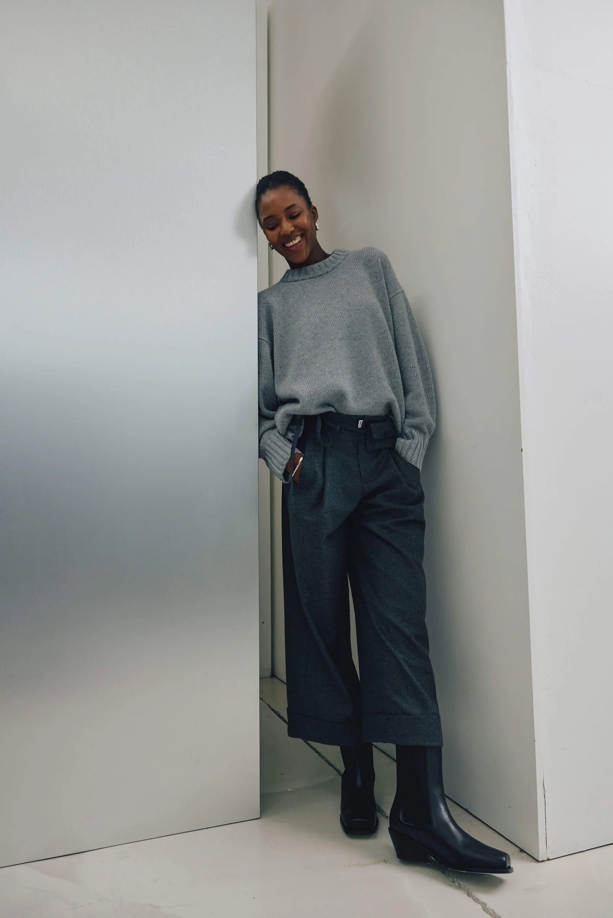 Hose PNTS 24_THE MINI G. Die THE MINI G WOOL besteht aus einer hochwertigen italienischen Woll-Qualität. Der hohe Wollanteil in der Ware macht die Hose zu einem Highlight für die kälteren Tage. Die feine Struktur der Wolle führt dazu, dass die Hose nicht kratzig ist. Sie hat eine gerade, weitere Schnittform mit eingearbeiteten Bundfalten vorne. Die Leibhöhe ist normal. Die Beinlänge ist verkürzt mit einem kleinen Aufschlag. Ein besonderes Must-Have ist der kleine Gürtel mit Pocket. Die Hose fällt größengerecht aus und macht jeden Look zu etwas Besonderem.