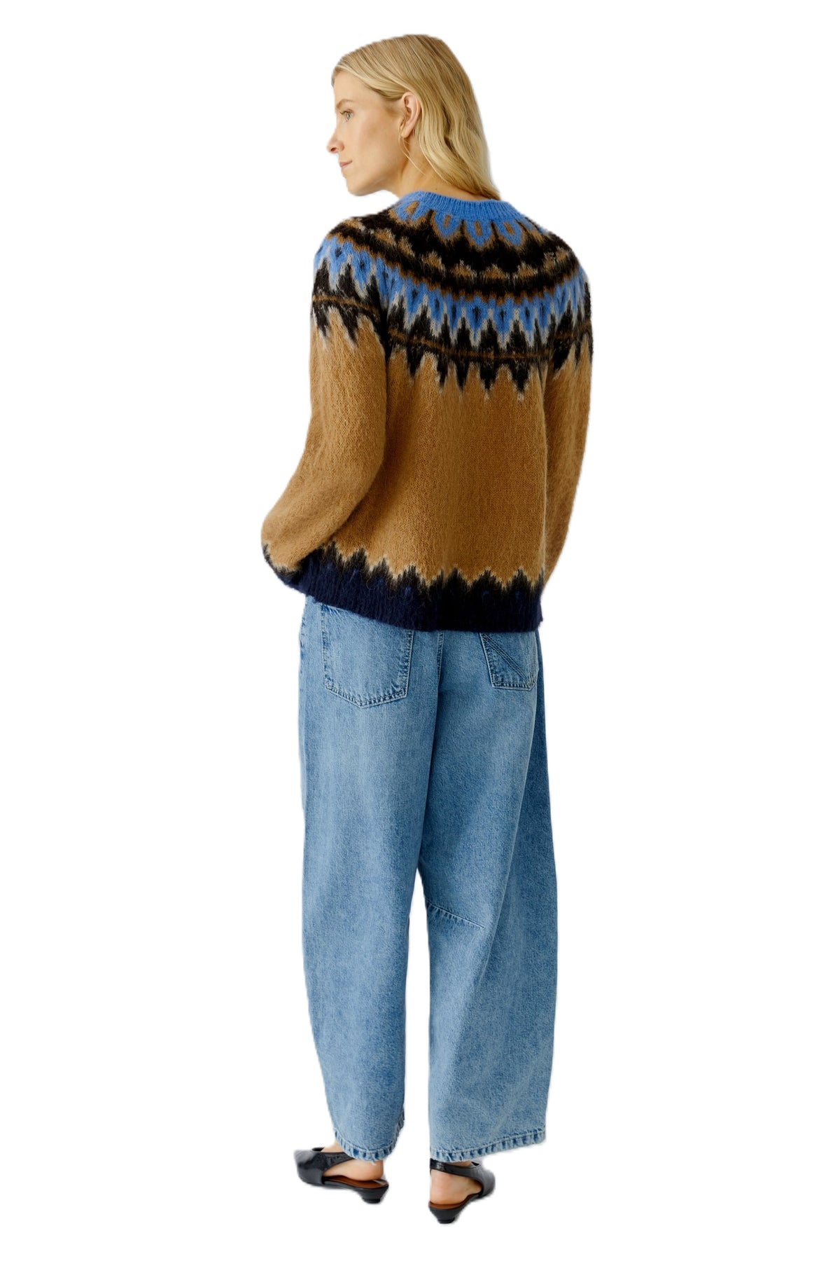 Pullover Oui. Dieser schöne Pullover im angesagten Norwegermuster hat einen Raglanärmel. Der Pullover besteht aus einem kuschligen Alpaka in einer wunderschönen Farbkombination. Er ist lässig geschnitten und hat eine normale Länge. Der Pullover hat einen Rundhalsausschnitt mit kurzen Rippbündchen. Der Saum und die Ärmel haben Strickbündchen aus Elasthan. Der Pullover ist locker geschnitten und kann mit allen Styles kombiniert werden, besonders schön zur Jeans.