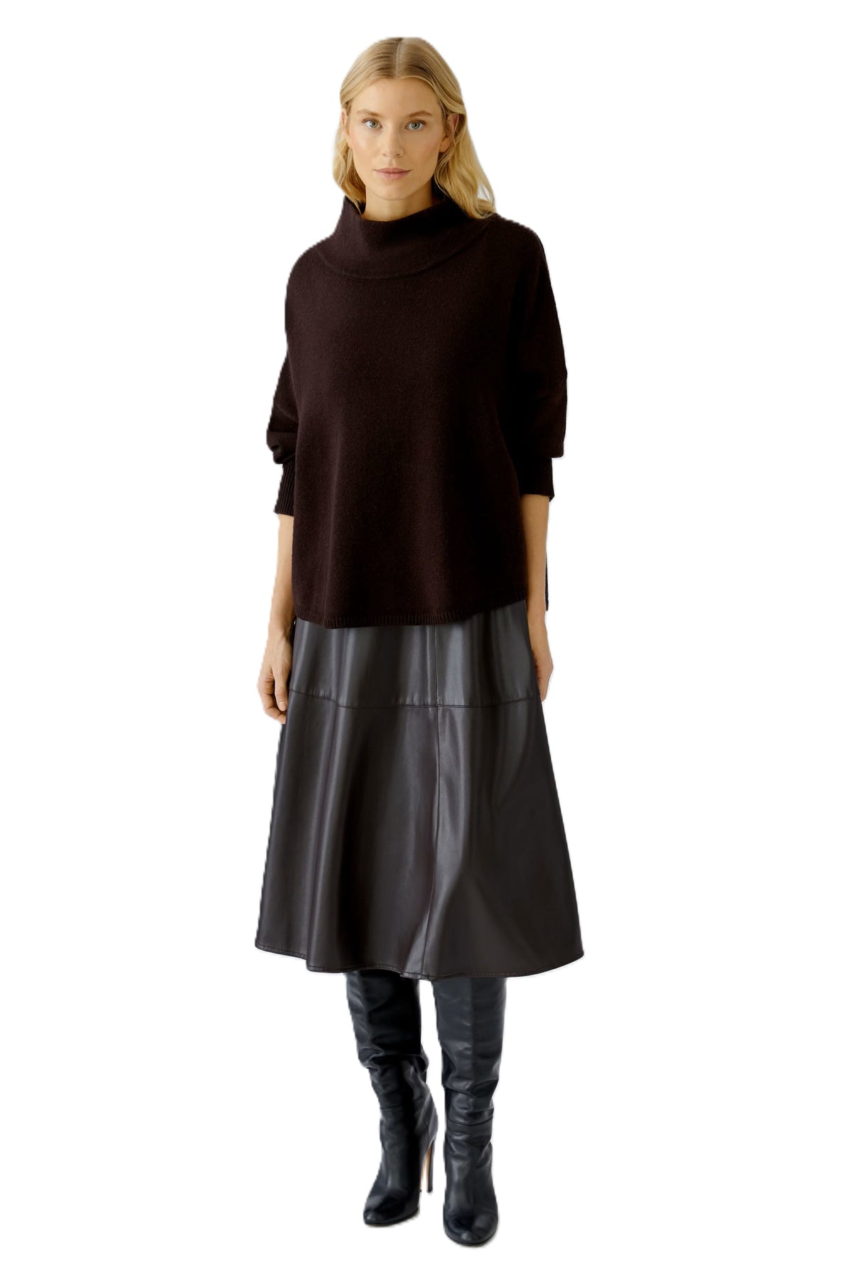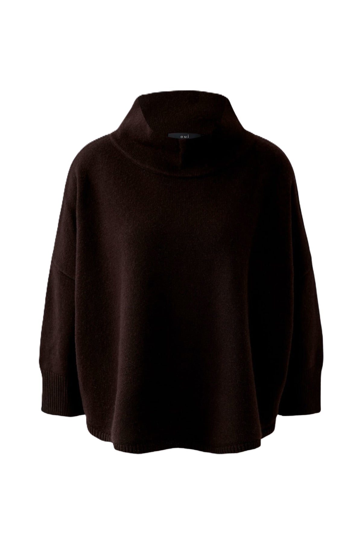 Pullover Oui. Dieser schöne Pullover von Oui ist ein richtiges Highlight. Er ist geschnitten wie ein Poncho mit tief eingesetztem Arm. Der Pullover fühlt sich weich und angenehm an und ist oversized geschnitten. Der Stehkragen ist gedoppelt und die Saumlinie abgerundet. Die Schultern sind überschnitten. Dieser Pullover kann mit vielen Styles kombiniert werden. Besonders hübsch zum Rock oder einer coolen Jeans. Er fällt lässig aus.