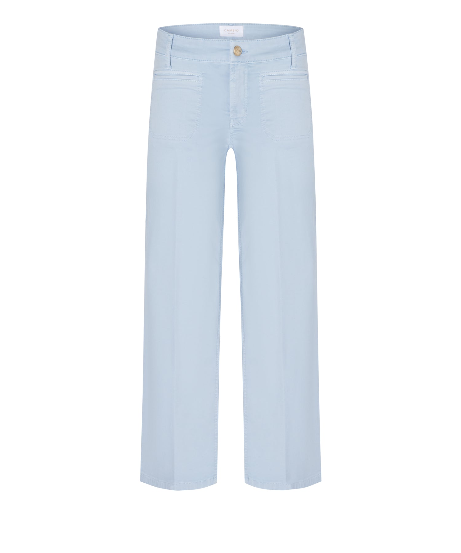 Hose Cambio Tess cropped. Schöne Hose in gerader und verkürzter Form. Die Hose hat zwei Stecktaschen auf der Vorderseite und einen angenehmen Griff. Die Hose hat einen hohen Tragekomfort. Sie fällt größengerecht aus und kann mit Blusen und Strick perfekt gestylt werden.