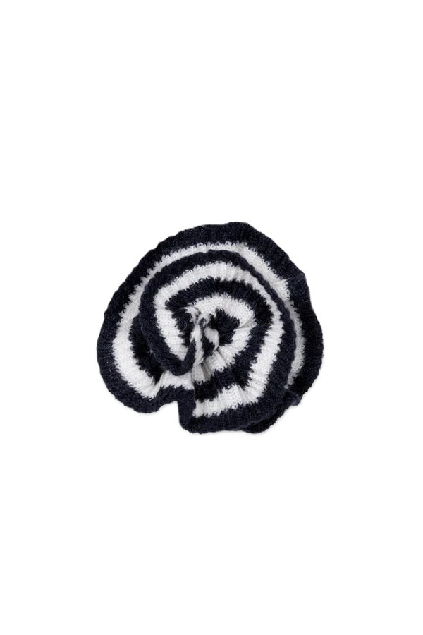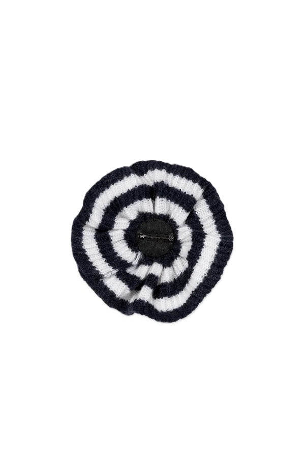 Strick-Brosche Luisa Cerano . Brosche mit großer, gestreifter Strick-Blüte. Auf der Rückseite befindet sich ein Filz-Patch mit metallischer Sicherheitsnadel zur Befestigung. Die Brosche ist ein richtiges Highlight und kann zu allen Blazern, Jacken und Oberteilen getragen werden.