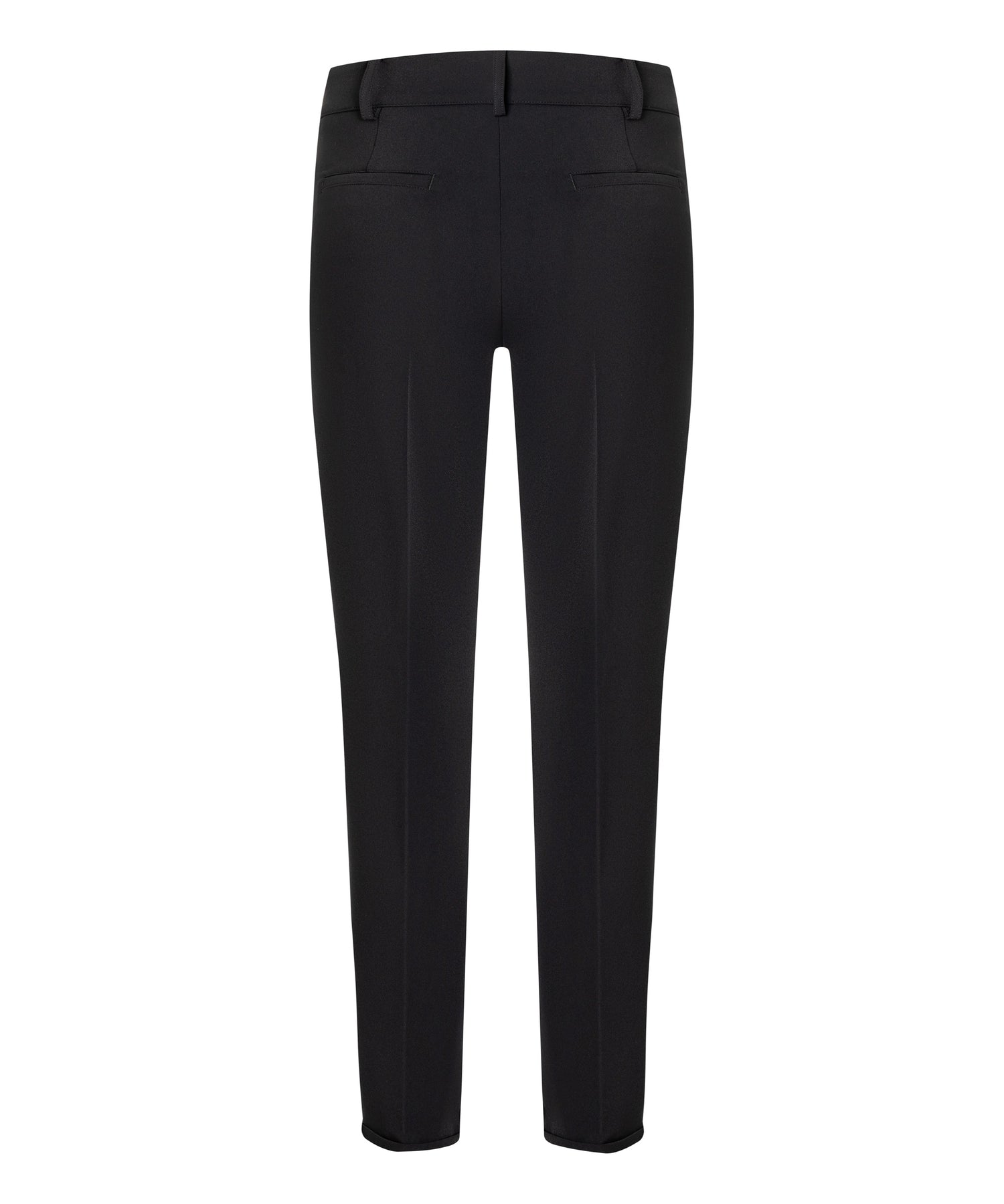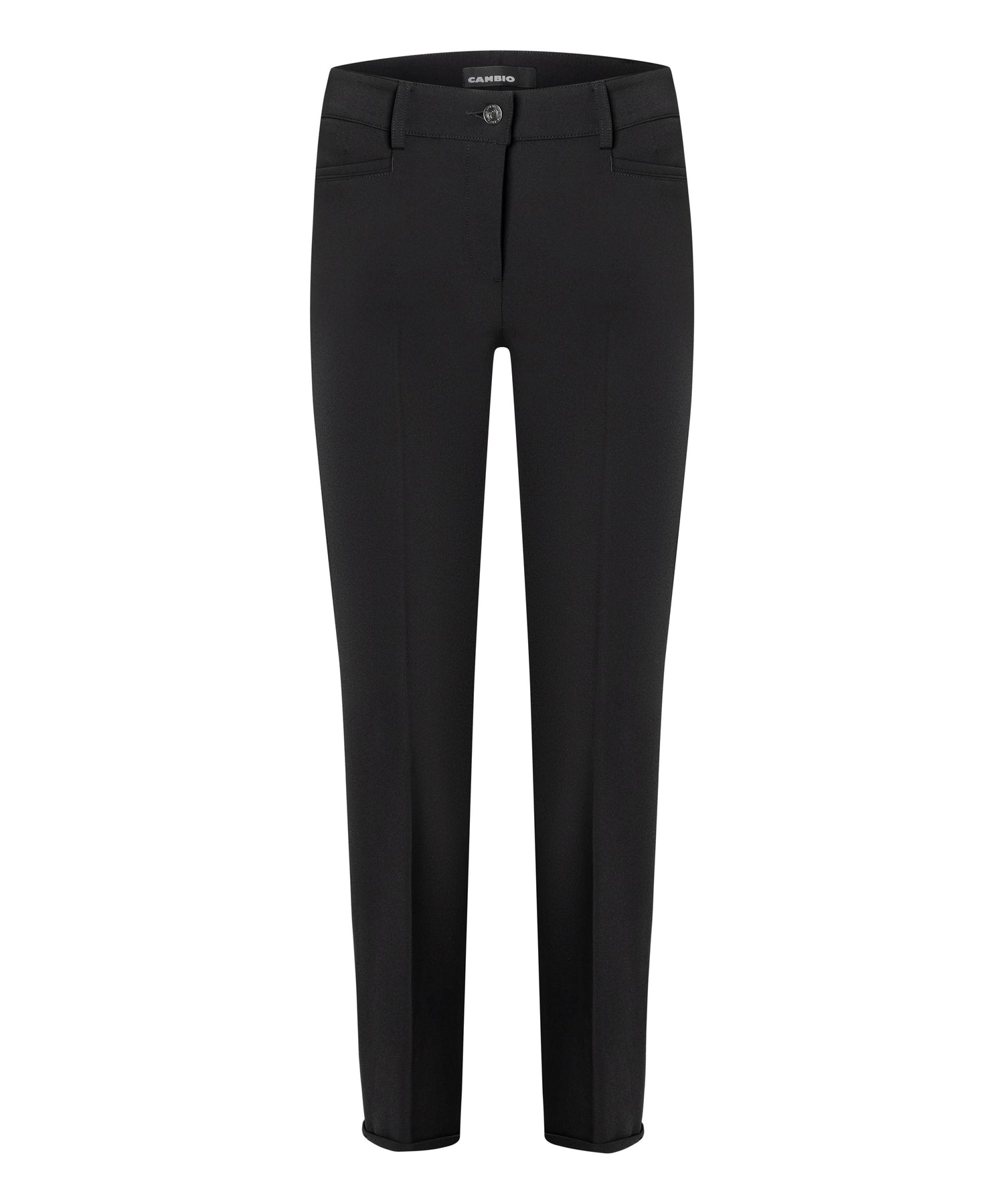 Hose Cambio Renira. Schöne klassische Hose von Cambio. Mit Knopf und gerader, etwas schmälerer Form. Die Länge ist leicht verkürzt und hat seitliche Stecktaschen und einen kleinen Aufschlag. Weiches und angenehmes Tragegefühl. Die Hose hat eine mittlere Leibhöhe und fällt größengerecht aus.