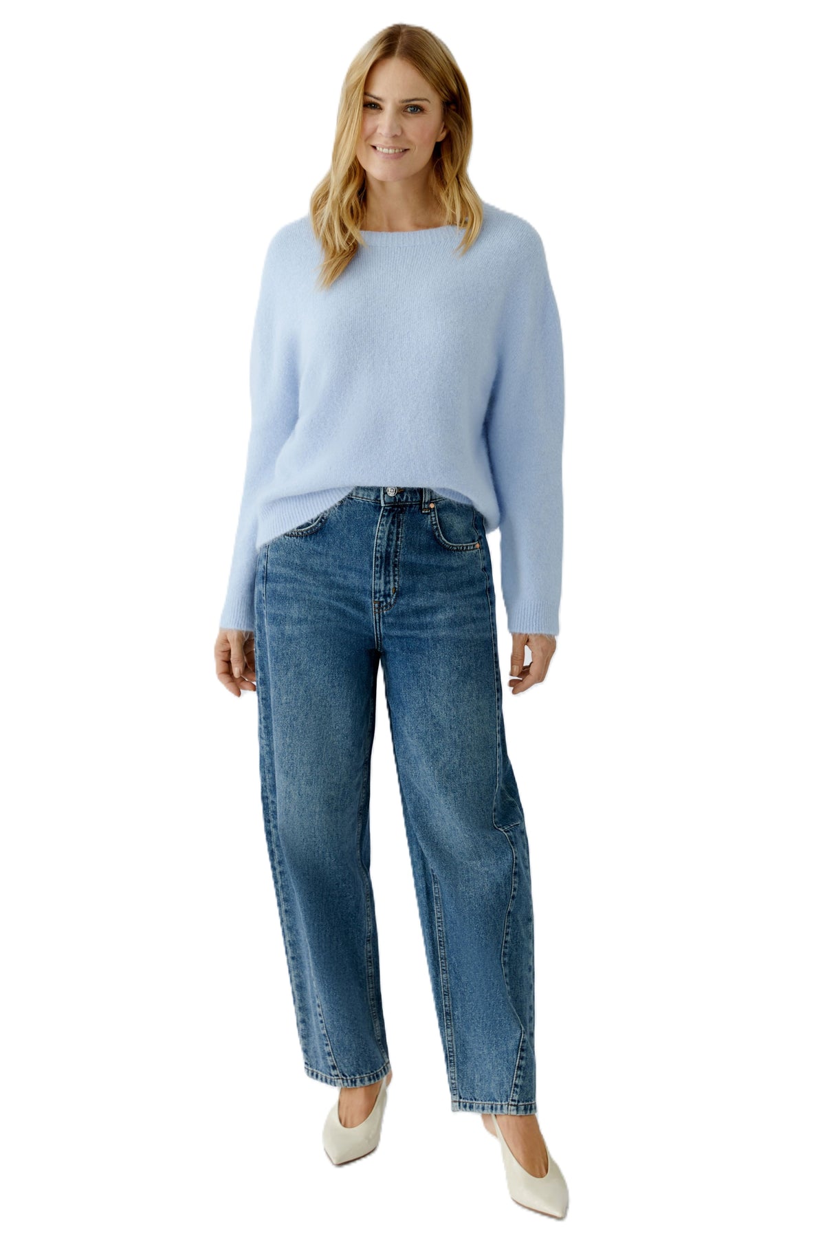 Pullover Oui. Der hübsche Pullover von Oui in hellblau verzaubert durch seine frische Optik. Der Pullover hat einen Rundhalsausschnitt und einen leicht überschnittenen Ärmel. Er ist ganz weich und leicht haarig. Der Pullover ist kastig und kurz geschnitten und fällt größengerecht aus. Er kannn super zur Jeans gestylt werden.