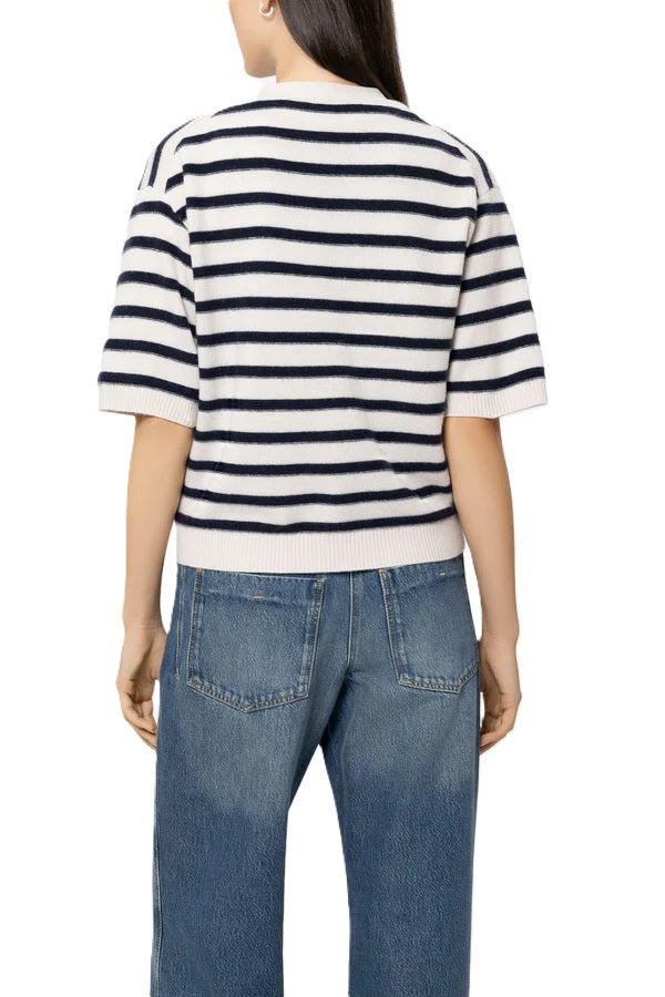 - Kurzärmliger, gestreifter Cardigan aus edler Kaschmir-Mischung