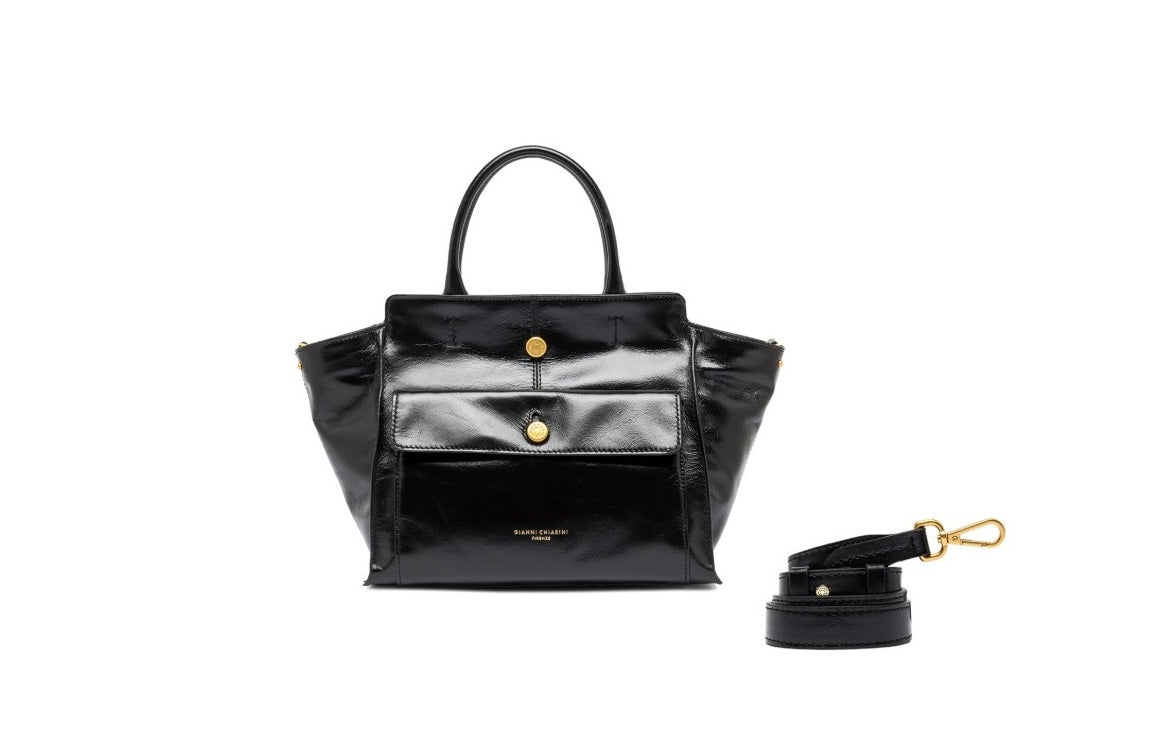 Tasche-Gianni-Chiarini-Cher-Echtleder-Fach vorne-nero-schwarz-verstellbaren-Trageriemen-Gold