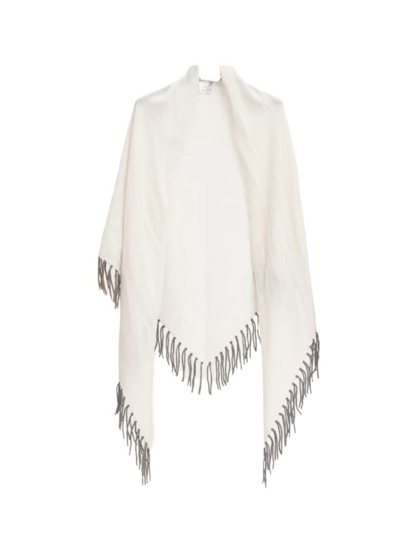 Tuch Herzensangelegenheit. Das tolle Tuch von Herzensangelegenheit hat eine Dreiecksform und weiße Fransen. Es ist aus einer weichen Ware, die sehr angenehm auf der Haut ist. Man kann das Tuch vielseitig stylen, um den Look perfekt zu vervollständigen.